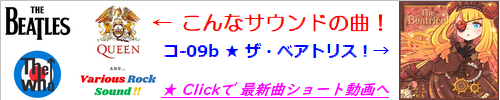 【コ-09b】ダウンロードサイト(見本)で FREE試聴できます~ ♩ 洋楽ロック アニメを元に?英語唄洋楽ロック:70年代風を書いてます。バナーから試聴サイトへGO ![]() |